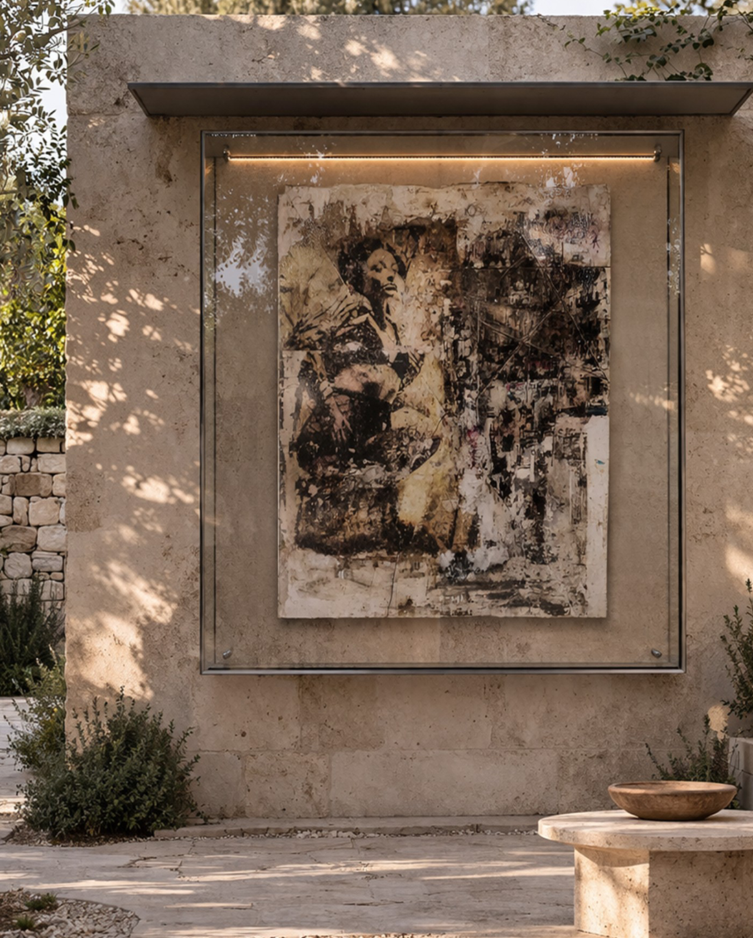 Every piece is built to carry the marks of time. Bronze that looks pulled from the earth after centuries. Plaster eroded the way old walls erode. Epoxy worked until it reads as weathered stone. I let the material do the speaking.