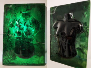 This work reflects on the slow erosion of the self — not only the body, but the identity we spend our lives constructing. Experience shapes us: every joy, every wound, every error and triumph leaves a mark. Over time, those marks accumulate until what remains is no longer a portrait of who we wanted to be, but a record of who life made us. The figure in this work appears partially formed and partially erased, suspended between presence and disappearance. It is a body, but also an echo — a fading memory rather than a living subject. As the surface oxidizes and shifts, the image continues to age on its own, just as a person does. It’s a reminder that identity is not fixed but in constant decay, and that eventually, the ego dissolves entirely. What endures is only a trace — the shadow we leave in the memory of others. The process mirrors the theme: beginning with a polished copper sheet, I oxidized some parts of it, then I transferred the image and burned it, allowing chemical reactions and time to participate in the creation. The result is not simply a representation of impermanence, but a physical embodiment of it. 50×50 cm Copper plate , oxidation, transfer print. 2025.